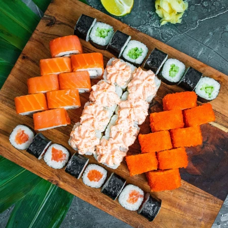 Филадельфия классическая, Дракон, Татаки Маки, Эби Маки, Лава с лососем, Калифорния, Том ям ролл, Фьюжн