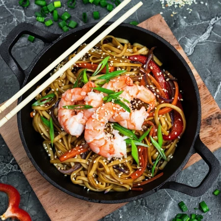 Рис обжаренный с овощами и курицей в остром соевом соусе