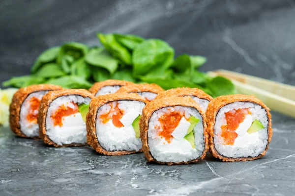 Состав: Курица в панировке, соус сладкий чили, рис. Украшение: белый кунжут.